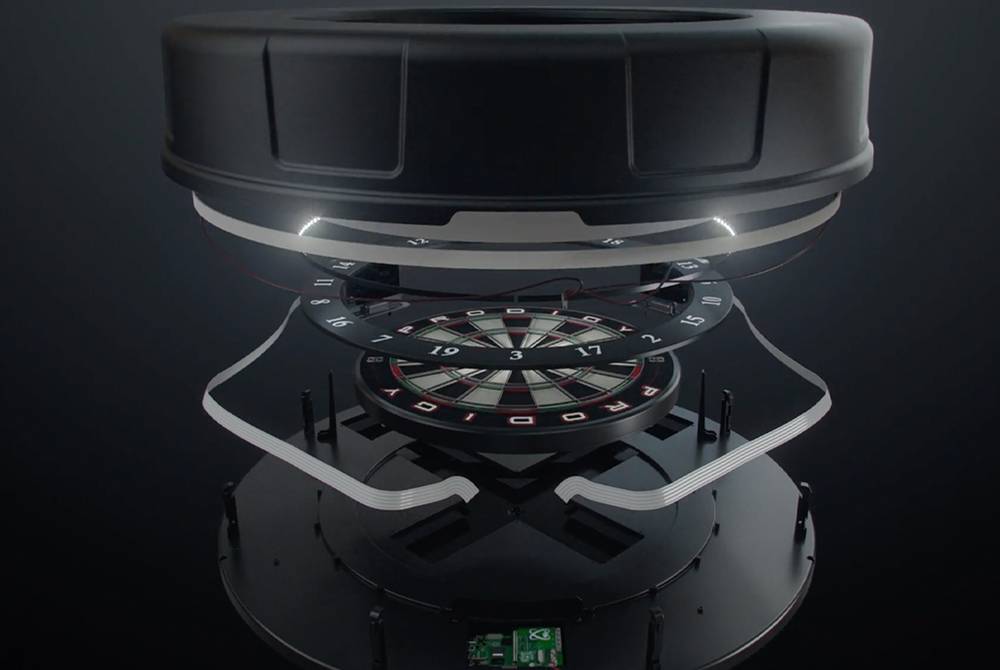 This premium-grade bristle dartboard is tournament sized board measuring 18” x 1.5” and utilizes razor thin, staple-free spider wire and Grade A Kenyan sisal for maximum scoring potential and virtually no bounce outs. When it’s time for a replacement board, simply remove the board and replace it with a new Prodigy board.